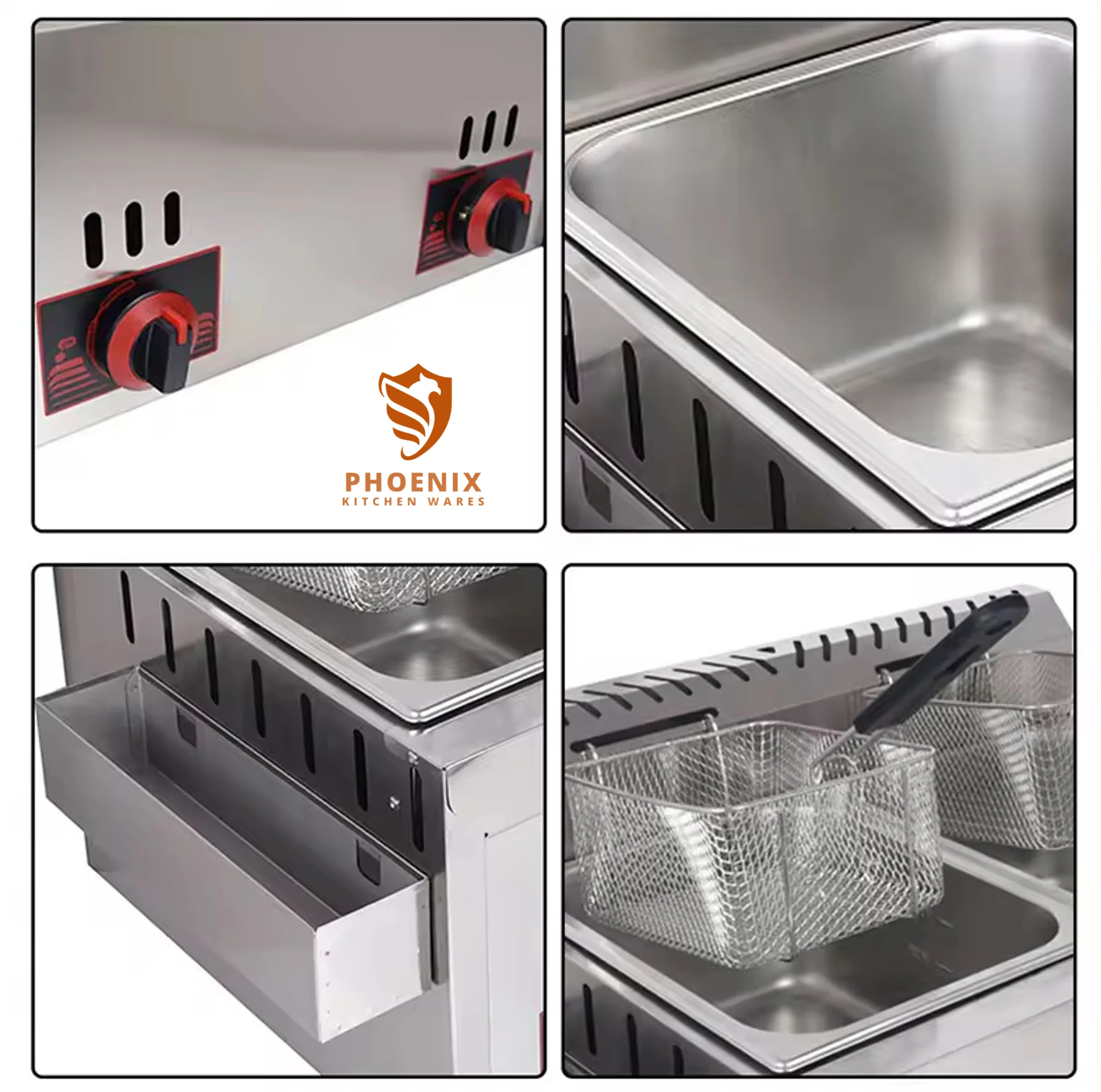 سرخکن گازی دو لگن ۶+۶ لیتری فونیکس (PHOENIX)