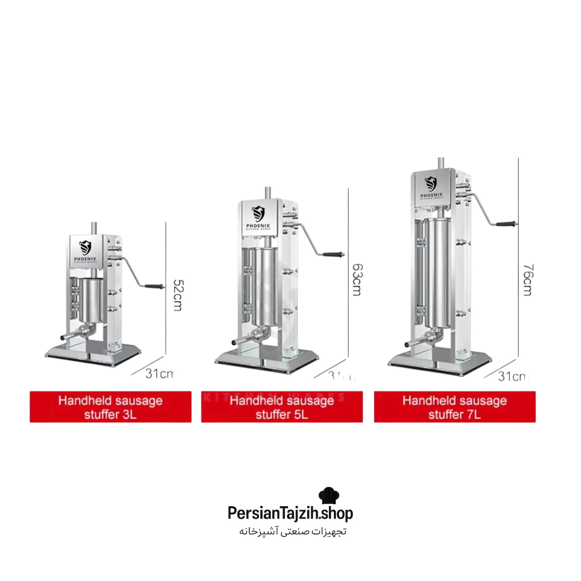 سوسیس پرکن دستی فونیکس مدل TH-3L یکی از محبوبترین و پرفروشترین ابزارهای تولید سوسیس خانگی و نیمهصنعتی است. این دستگاه با طراحی تمام استیل ضدزنگ، ساختار مقاوم و کاربری بسیار آسان، برای کارگاههای کوچک، آشپزخانههای حرفهای و مصارف خانگی گزینهای ایدهآل محسوب میشود.