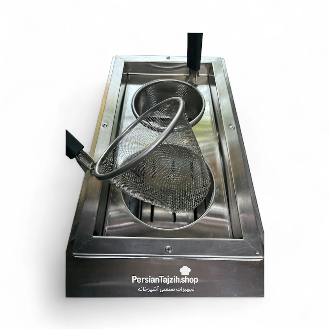 پاستا ساز صنعتی دو سبد فونیکس مدل PH-PN2 با طراحی تمام استیل، شیر تخلیه، المنت ترموستاتدار و کاربری آسان، انتخابی هوشمندانه برای آشپزخانههای حرفهای است که به کیفیت، سرعت و دوام اهمیت میدهند.